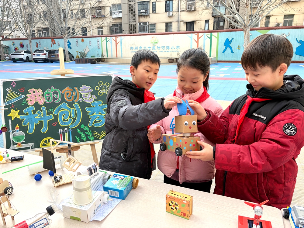 当废弃的纸箱变身为充满创意的“城市地标”,当旧玩具的马达展现出机械运动的奇妙,科学与童心的碰撞,在郑州市二七区汝河路小学的校园里迸发出了最璀璨的火花。近日,一场以“我的创意科创秀”为主题的校园科创盛会在此隆重举行。这不仅是一场简单的成果展示,更是一次面向未来的生动实践,一次激发好奇心的勇敢探索。